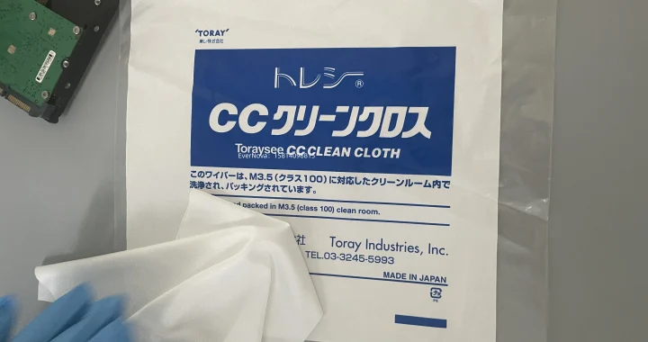 无尘布材质需为超细纤维或高密度涤纶,具备低掉屑、低离子、低非挥发性残留特性。
